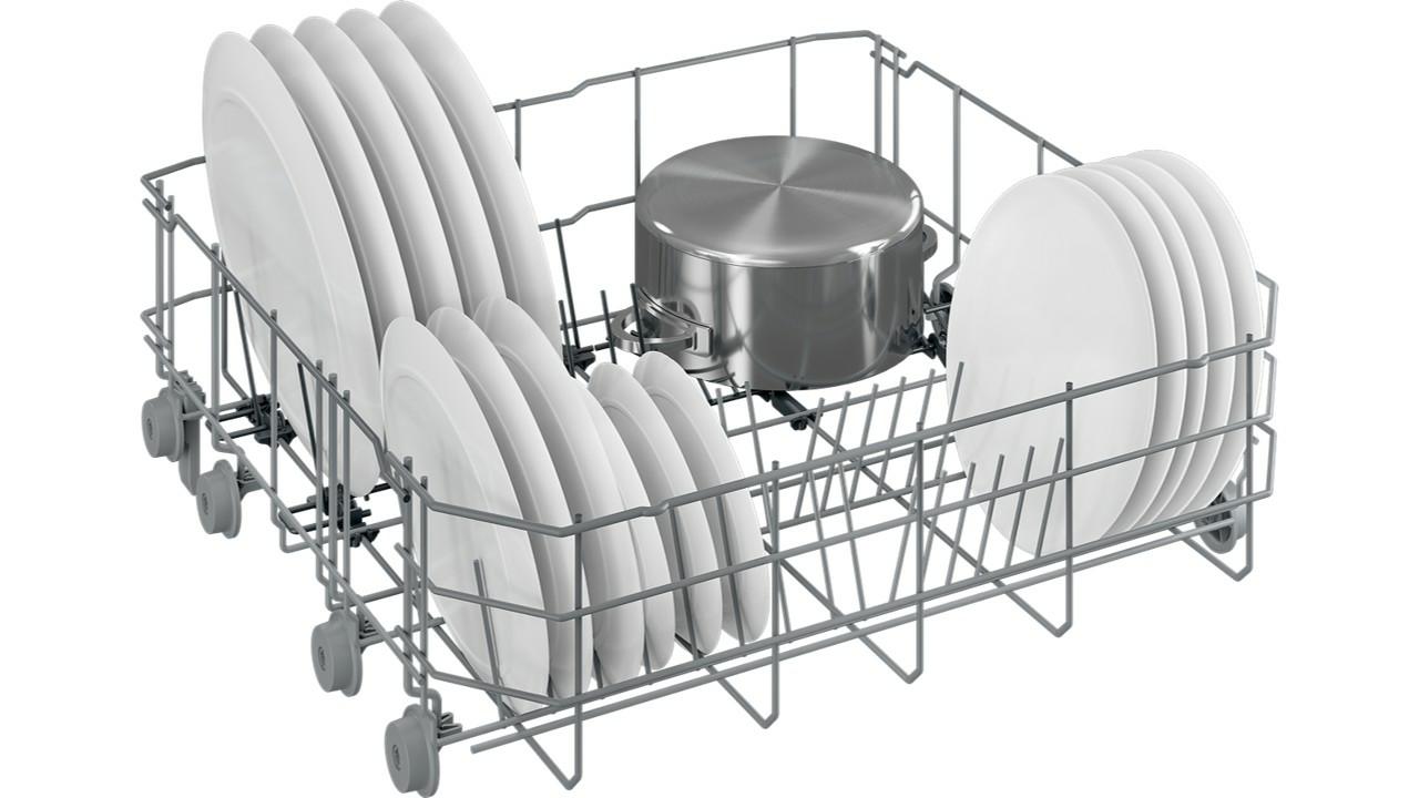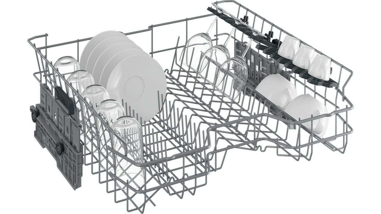 Height Adjustable Upper Basket – The Upper basket can be adjusted offering more flexibility and storage versatility. You can raise it up to make room for larger pots and pans in the bottom basket or lower it to create space for tall glasses in the top basket.