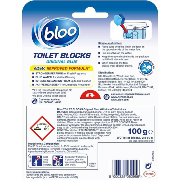 Bloo 2 x 50g Toilet Duocube Blocks for Cistern – Original Blue 3501-OR
