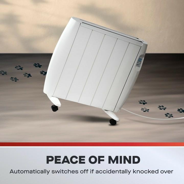 This radiator is equipped with a tip-over switch that automatically shuts off the unit if it’s accidentally knocked over, preventing accidents as well as overheat protection to ensure safe operation even during prolonged use.