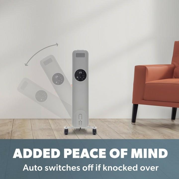 The radiator is designed to have your safety at the forefront thanks to the Built in Over Heat Protection and Tip-Over Safety Switch. If the radiator gets too hot or is accidently knocked over it will switch itself off / cut power to the unit.