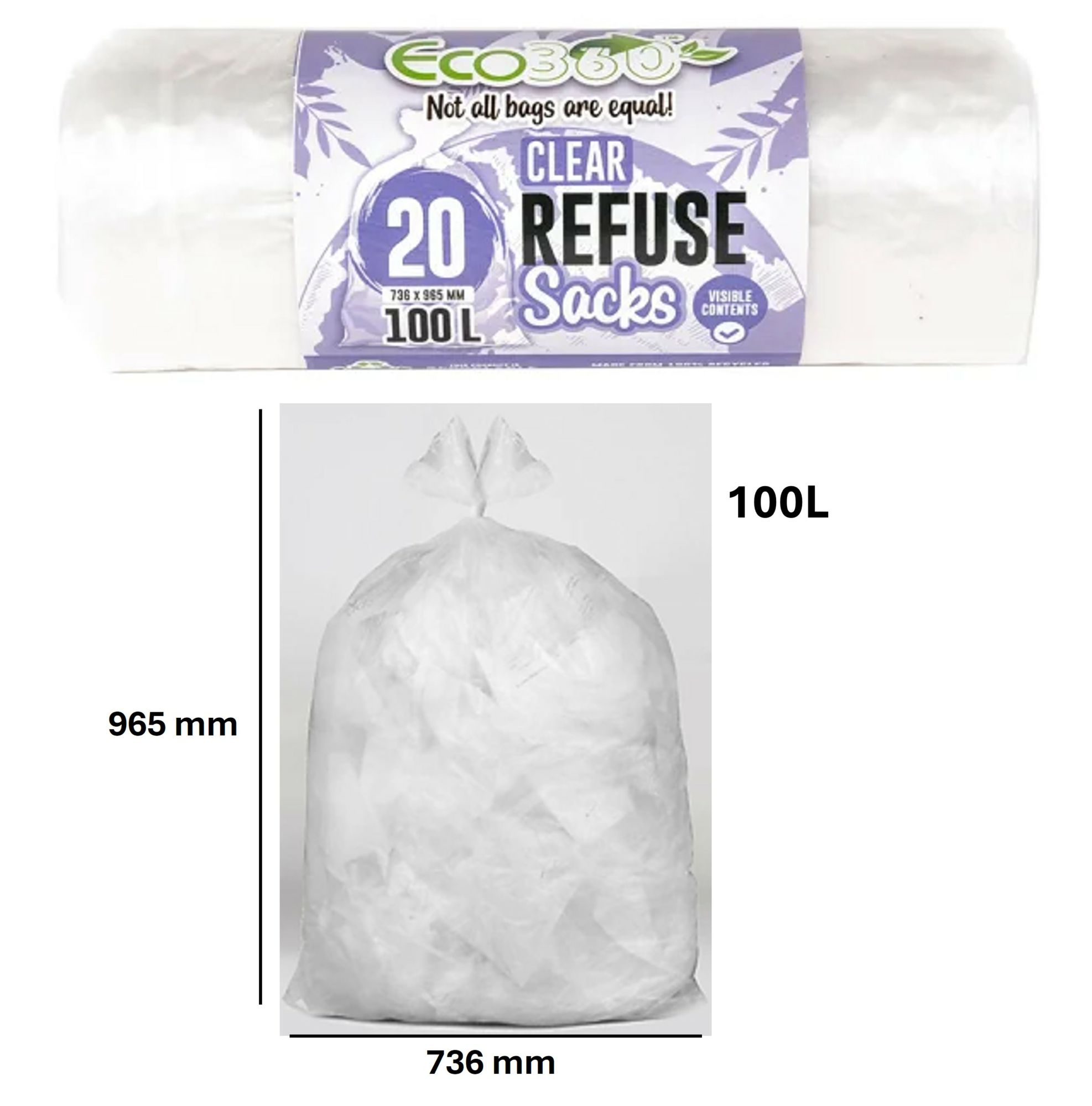 Eco360 20 x 100L Recycling Refuse Sacks – Clear 0150645