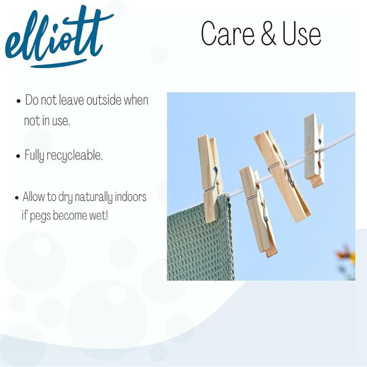 Dry your clothes with ease using 36 pinewood clothes pegs. They are rust resistant giving you long lasting use.Do not leave outside when not in use. If they become wet allow to dry naturally indoors.Fully recyclable.