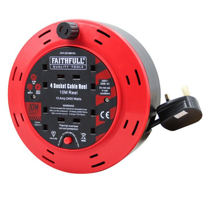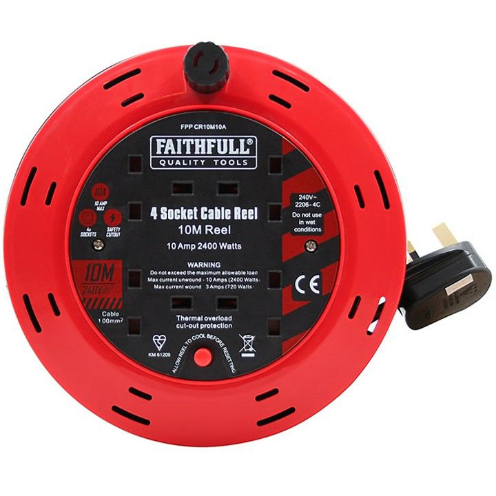 Faithfull 10m Cable Reel – 4 Socket XMS25CR10M