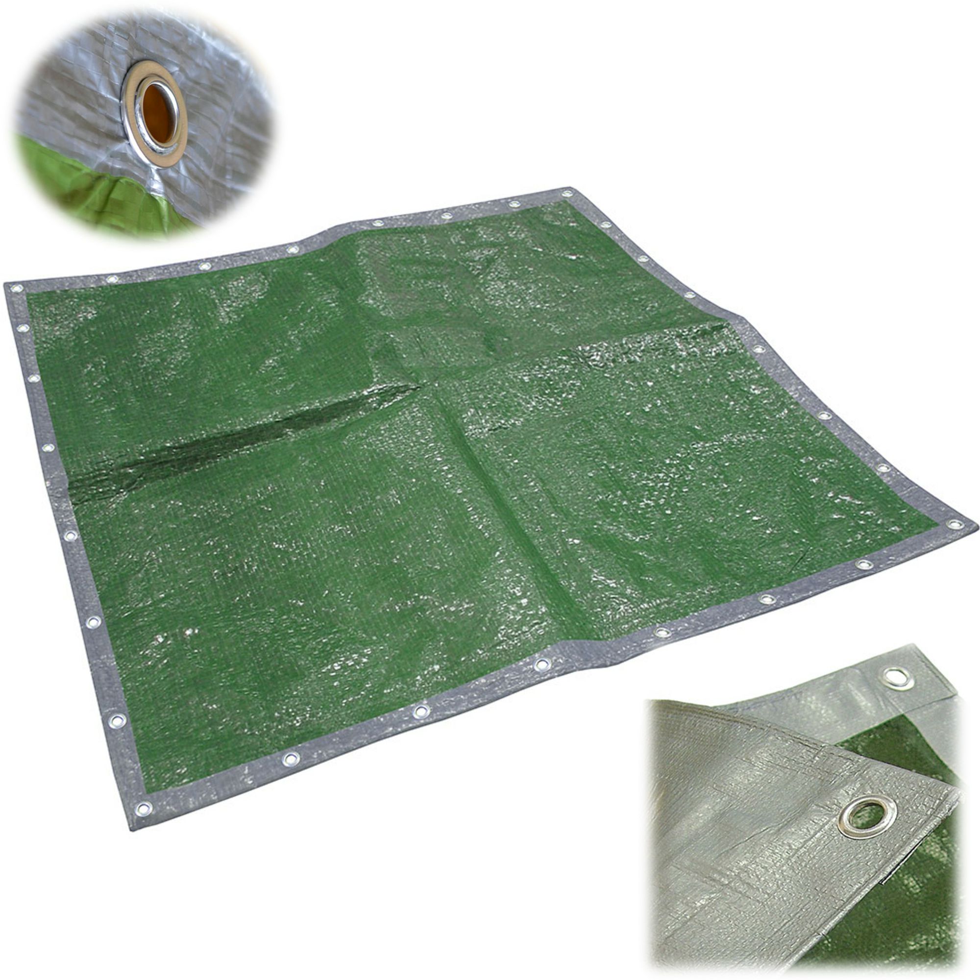 Home » Shop Online » DIY, Tools » Dust Sheets/Coverings/Felt » Faithfull 12x9ft Tough, Re-useable and Waterproof Tarpaulin – Green and Silver FAITARP129