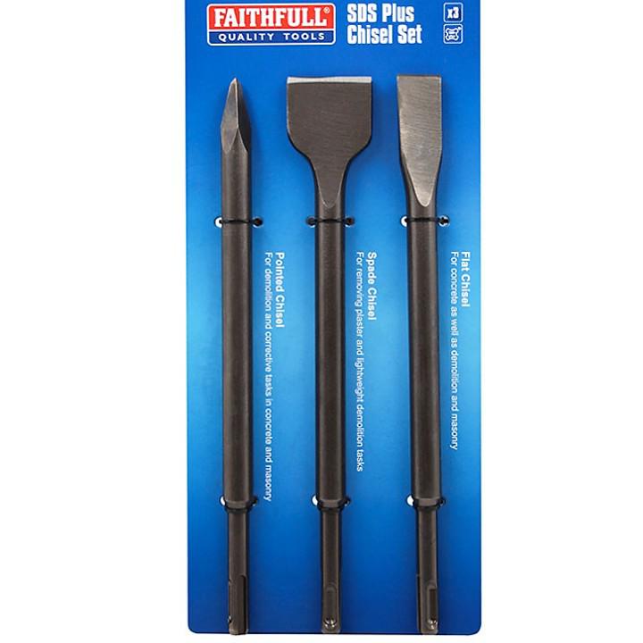 Faithfull 3 Piece SDS Plus Chisel Set – Flat, Pointed, Spade XMS25SDSSET