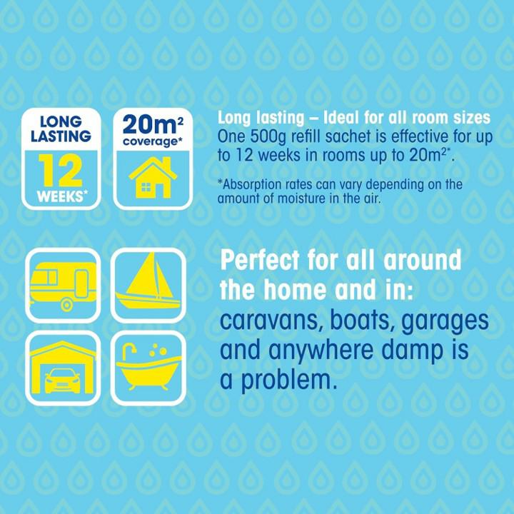 Remove excess moisture from your home with these handy sachets. Each one will last up to 3 months in rooms up to 20 square meters. Make sure you keep out of reach of children and animals.