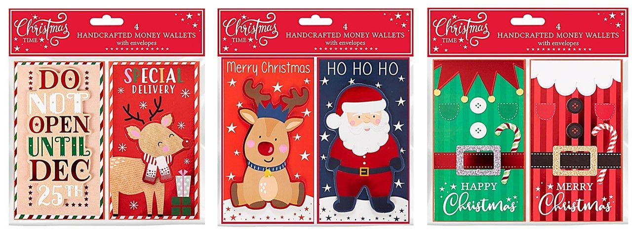 Home » Shop Online » Christmas » Stockings, Sacks, Money Wallets, Gift Wrap, Tags, and Bags » Money Wallets – Pack of 4 – ReindeerPost, SantaReindeer or Suits 5771812