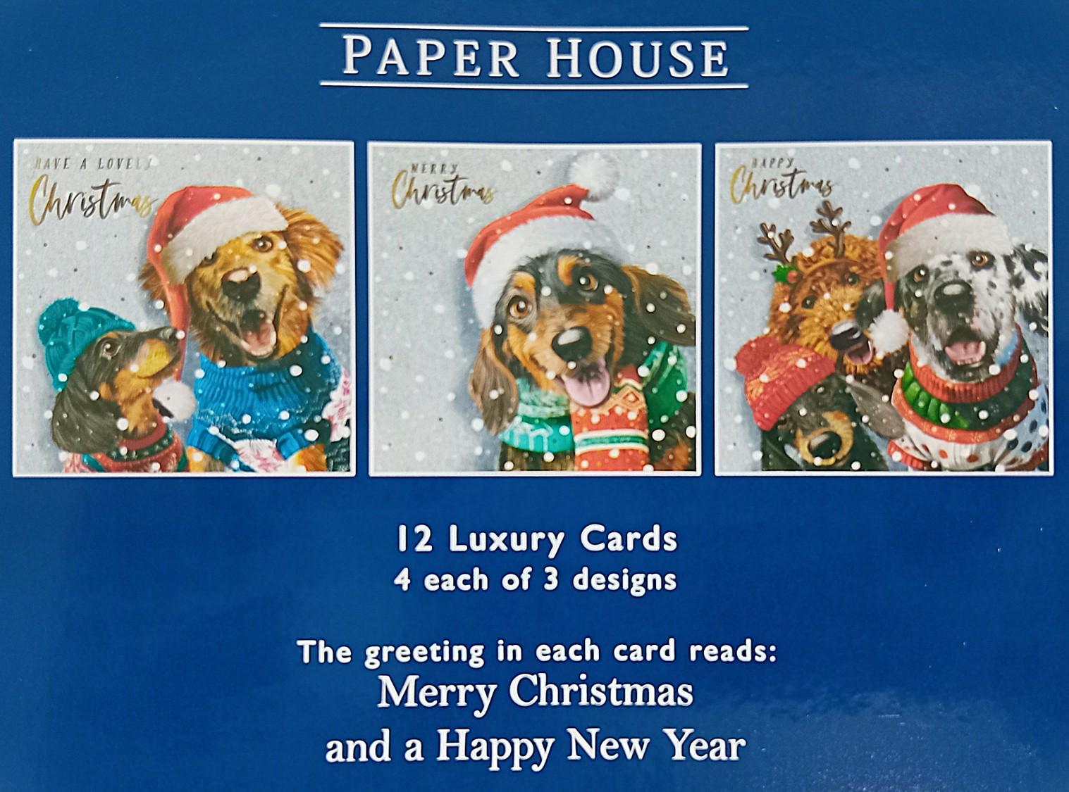 Paper House 12 Christmas Cards – Dogs in Jumpers and Hats DELP0031