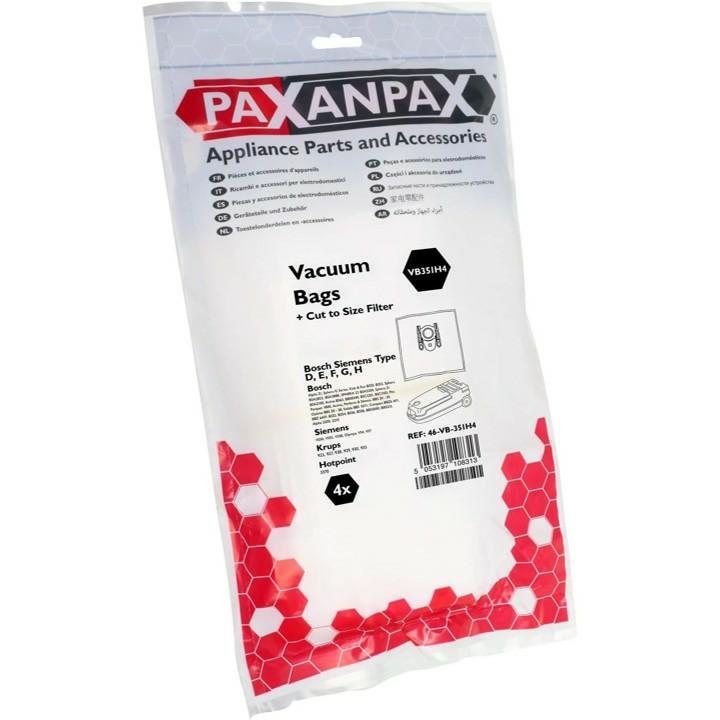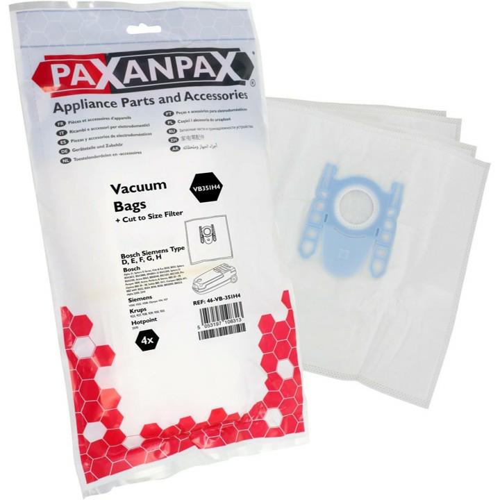 Home » Shop Online » Floorcare » Vacuum Accessories » Paxanpax 4 x Vacuum Bags – Suitable for Bosch Siemens (Type D,E,F,G,H) VB351H4
