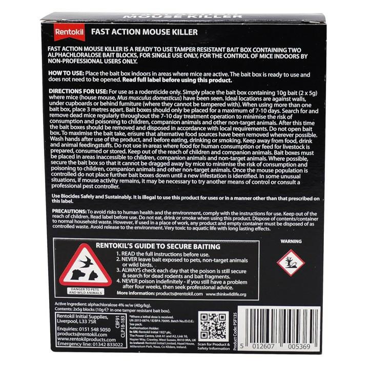 Rentokil 2 x Pre Baited Boxes Fast Action Mouse Killer PSF135 (5621094)