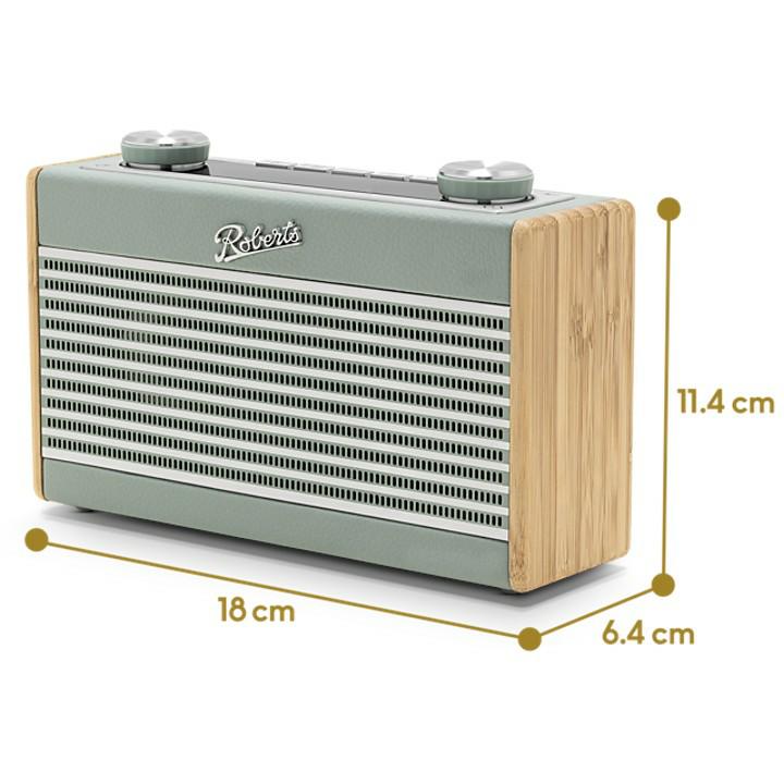 A Bass Radiator and full range front facing speaker driver provide Roberts well-known rich sound.
