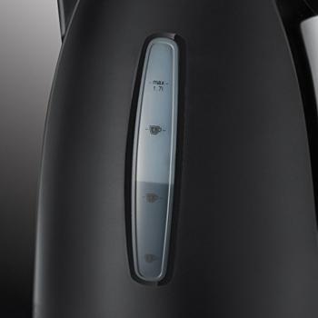 This Russell Hobbs Textures Jug Kettle is a stylish practical addition to your home, combining high gloss with a matt finish and accents of stainless steel. It has a capacity of 1.7 litres, so can boil up to 6 cups in one go. With an internal cup indicator you can just fill as much water as you would like for 1, 2 or 3 cups.Featuring rapid boil you will be able to have drink in no time, one cup of water can boil within 50 seconds. It features dual water windows with water level indicators so you can fill the kettle facing either side, with as much or as a little water as you like which in turn will make savings on those energy bills. The on/off switch illuminates when boiling so you know when it is on and in action. The push button lid ensures easy access for filling up. Whilst the **perfect pour-spout** allows you to evenly fill mugs and cups without any spillages.A 360 degree base means the kettle can be used with either hand and sit any where within the kitchen. Cord storage is built into the bottom of the base. To keep your drinks free from limescale the kettle has a filter which is removable and washable. . This product comes with a 2 year warranty which you can extend by 1 year if you register online. Dimensions (mm) Height x Width x Depth = 230 x 200 x 158
