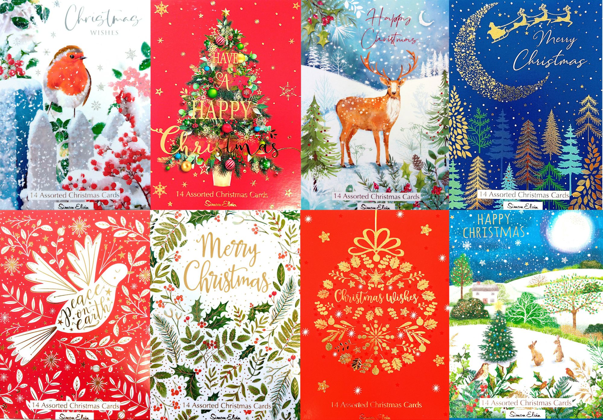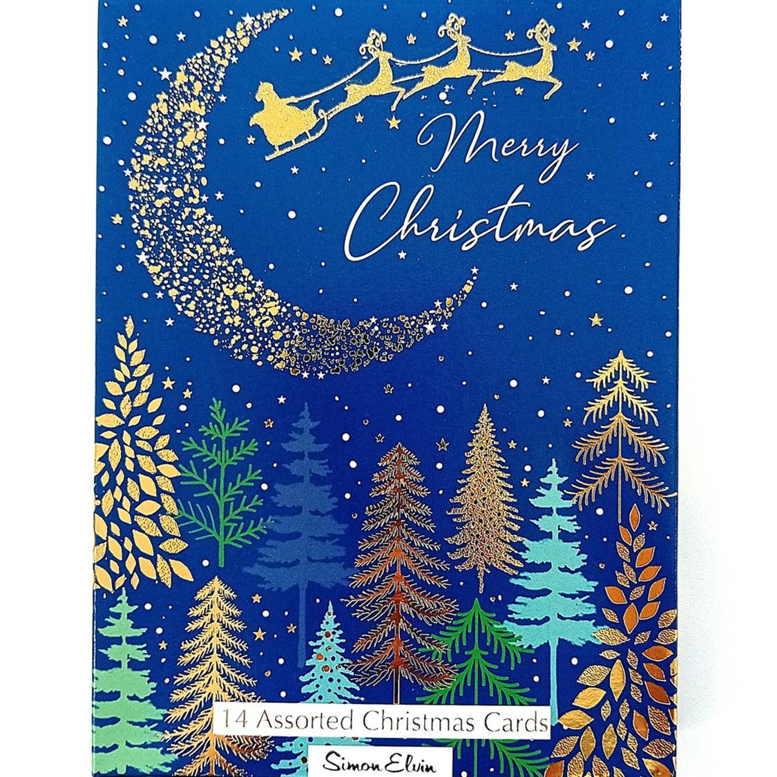 Simon Elvin 14 Foiled Christmas Cards – Assorted Pack Choice XSE32259