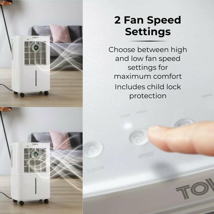 Select between a High and Low setting depending on how quickly you need moisture removing from your home, or the time of day.