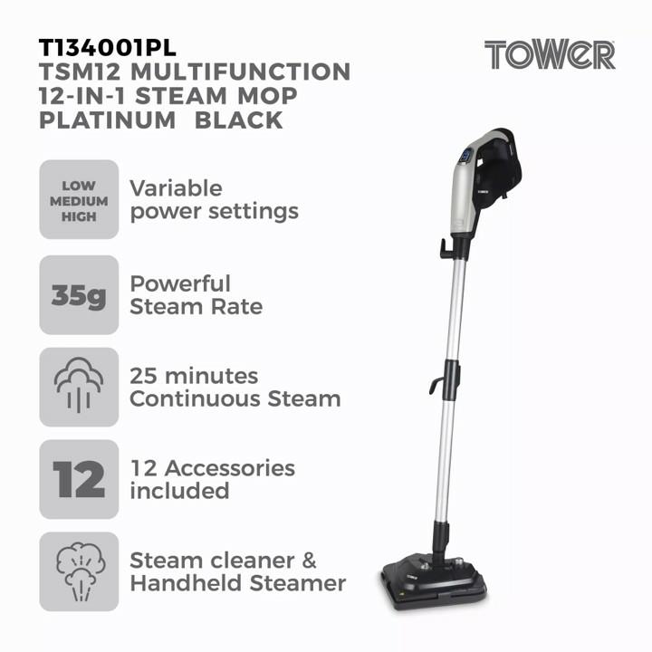 Home » Shop Online » Floorcare » Steam Mops » Tower TSM12 Multi-Functional 12 in 1 Steam Cleaner T13400PL
