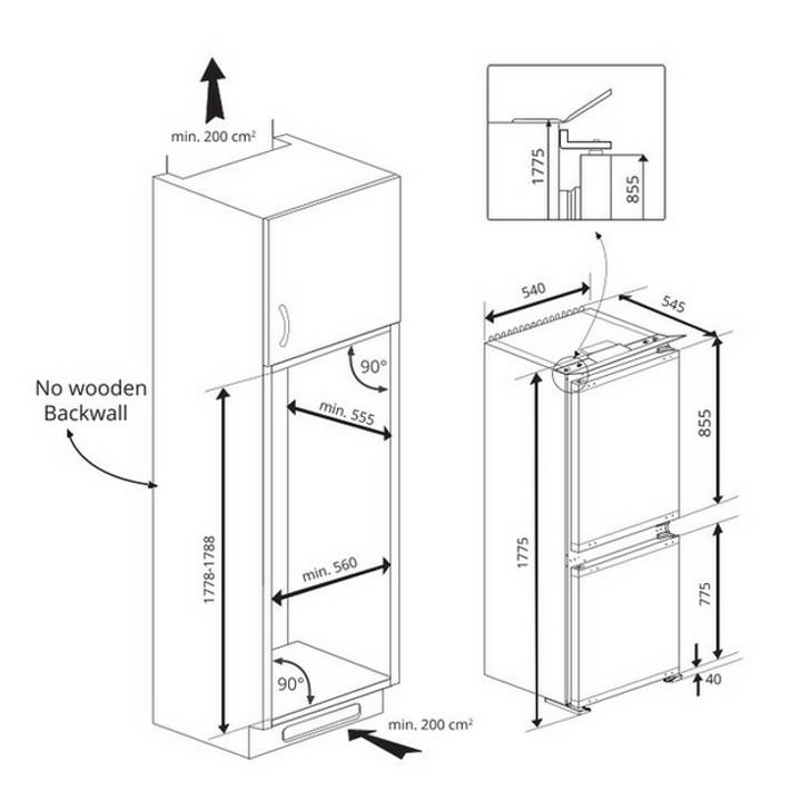 Zenith Integrated Fridge Freezer ZICSD455